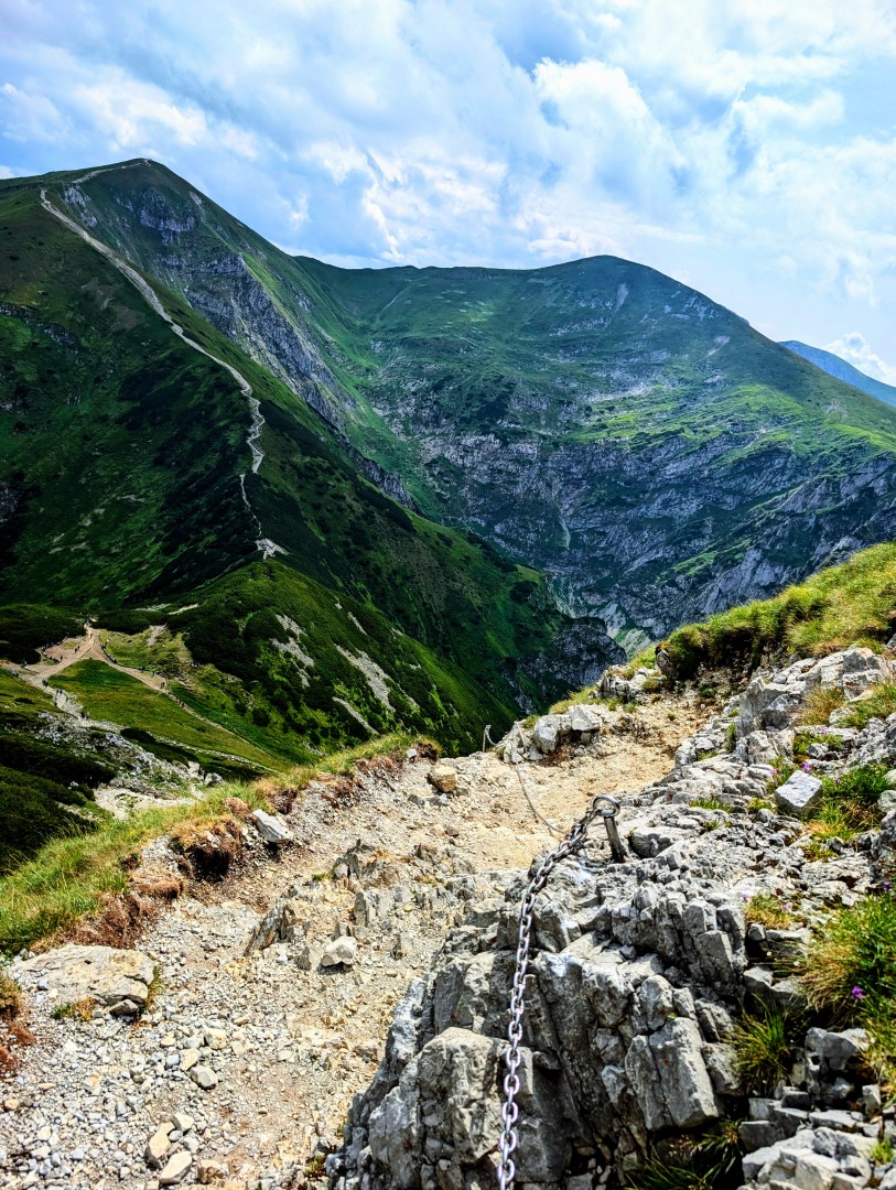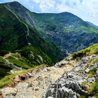 A Giewont nem játék. Legalábbis úgy, ahogyan mi jártuk meg. Az érkezésünk másnapjára terveztük be ezt a túrát, ami eredetileg egy összesen 11 km-es kirándulásnak indult, mégis valahogy egy 25 kilométeres embert próbáló küzdelem lett belőle. Hogyan? A kirándulásoknál Gergő a navigátor, de úgy sejtem, hogy valahol a Strążyska Polana nevű állomásnál tértünk le a kijelölt turistacsapásról, ott ugyanis annyi ember tolongott, ami szinte élvezhetetlenné tette az élményt. Így hát inkább egy jóval kevésbé járt utat kerestünk magunknak. Az első 10-15 kilométernél még nem is volt ezzel semmi gond, hiszen gyönyörű tájakon vitt az utunk. Az utunk, ami nem kis szintemelkedést produkált és néhol már inkább másztunk, mintsem sétáltunk. Egyes részek valószínűtlenül meredeken vittek fölfelé, máshol pedig egyszemélyes kecskeösvényeken araszoltunk libasorban. Kalandos volt, nem tagadom és még a kalandosnál is fárasztóbb. Mi nem vagyunk profi hegymászók, de szeretjük a kihívásokat, itt pedig ezekből akadt bőven. Főleg, mert túrabakancs helyett sportcipőben indultunk neki a hegynek. Utólag mondhatnám, hogy rossz ötlet volt, de inkább maradjunk annyiban, hogy tanulságos.
